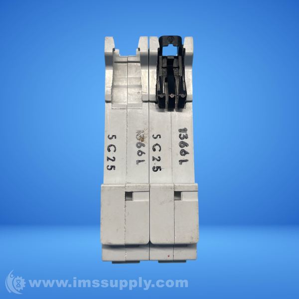 2-pole miniature circuit breaker with C-curve, 25A rated current, 10kA short-circuit breaking capacity at 400V AC. Compliant with IEC/EN 60898-1 and IEC/EN 60947-2.