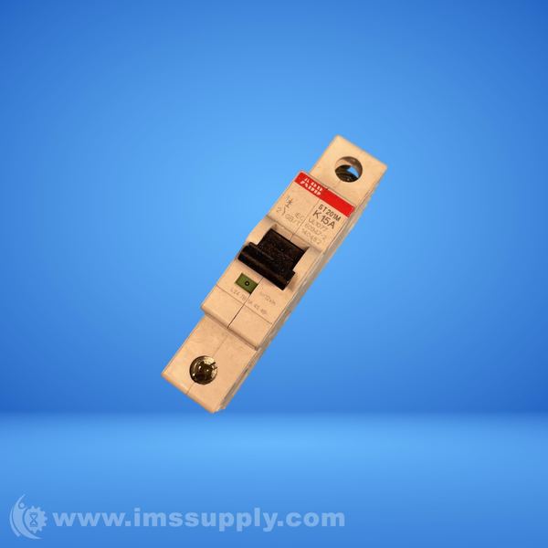 1-pole miniature circuit breaker with K tripping characteristic, 15A rated current, and 15kA ultimate short-circuit breaking capacity at 230V AC.