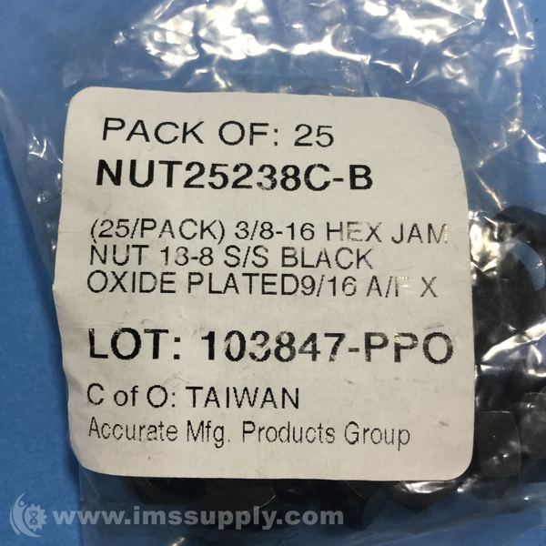 ACCURATE INC. NUT25238C-B JAM HEX NUT, 3/8"-16 SIZE, BAG OF 25