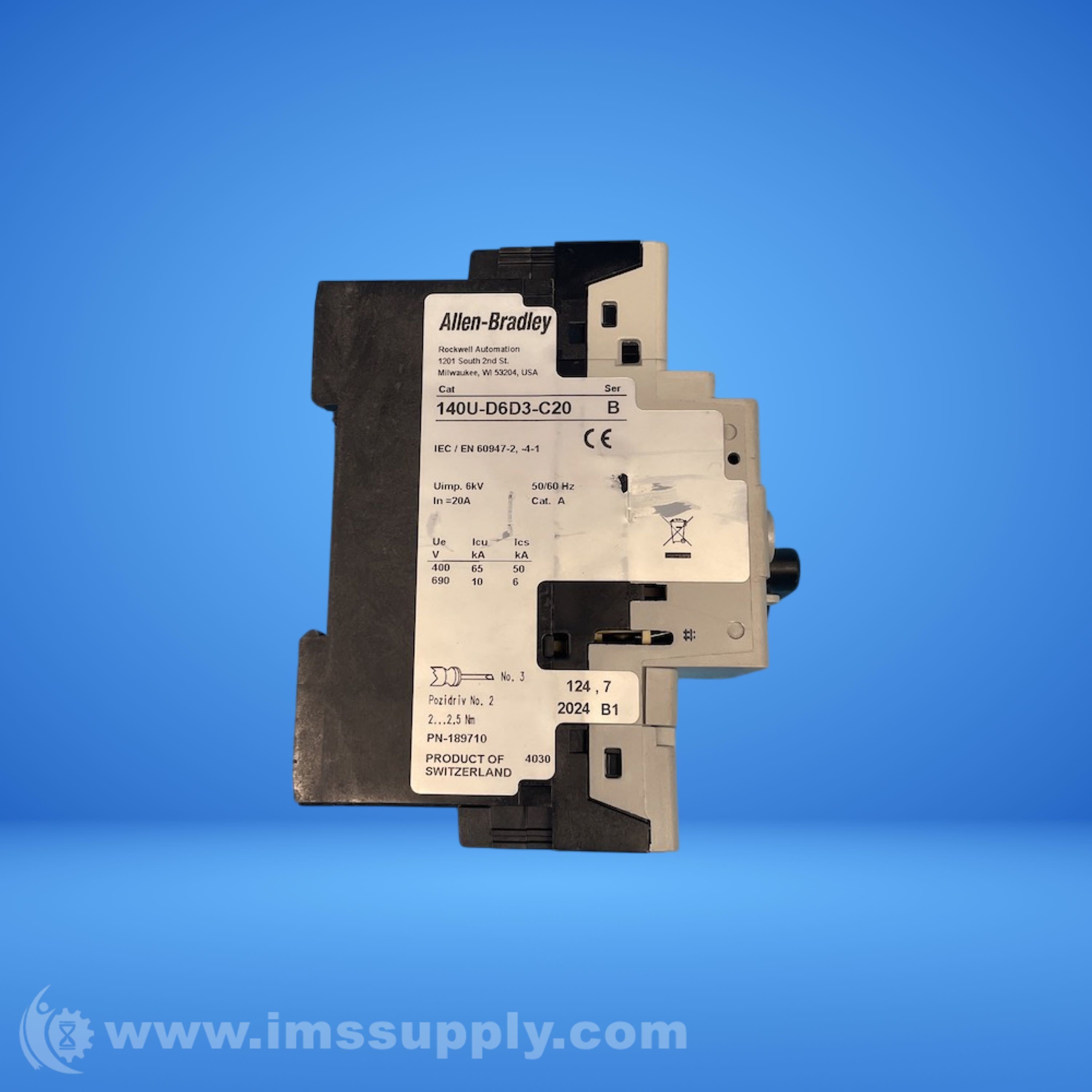 ALLEN BRADLEY 140U-D6D3-C20 SERIES B CIRCUIT BREAKER