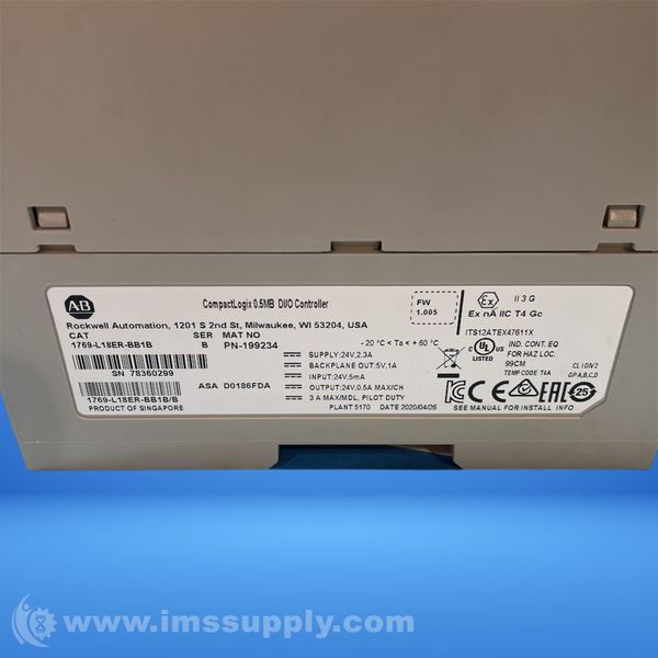 ALLEN BRADLEY 1769-L18ER-BB1B COMPACTLOGIX CONTROLLER