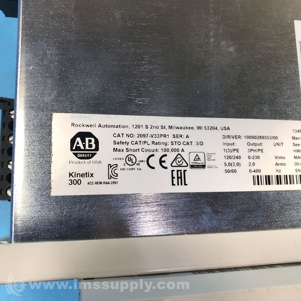 Allen Bradley 2097-V33PR1 Series A Kinetix 300 EtherNet/IP Indexing Servo Drive, 120/240V AC Single Phase or Three Phase, 500 Watts