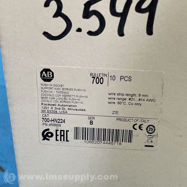 ALLEN BRADLEY 700-HN224 SPRING CLAMP TERMINAL SOCKET, SERIES B