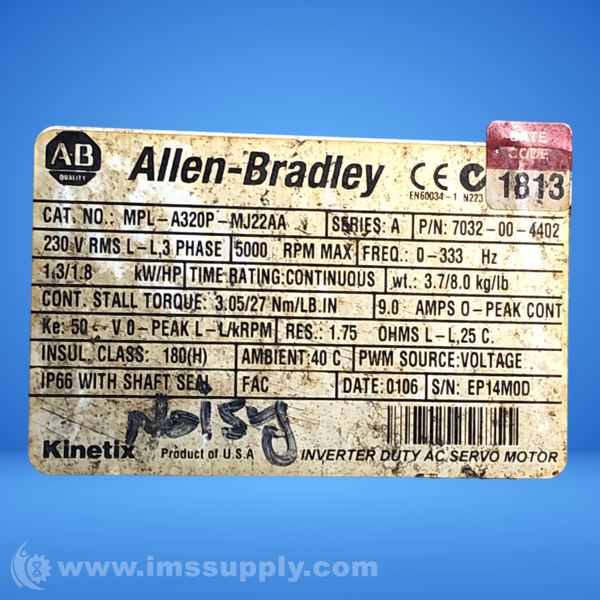 ALLEN BRADLEY MPL-A320P-MJ22AA