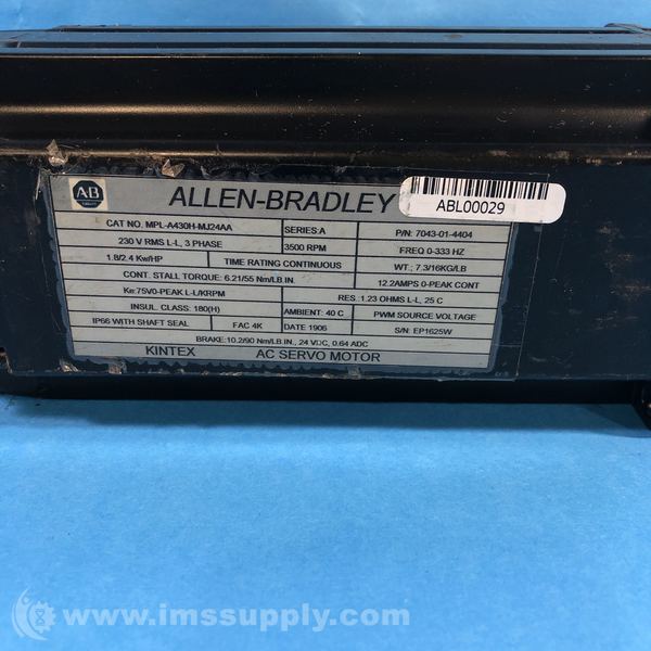 Allen Bradley MPL-A430H-MJ24AA AC Servo Motor, 3500 RPM, 3-Phase