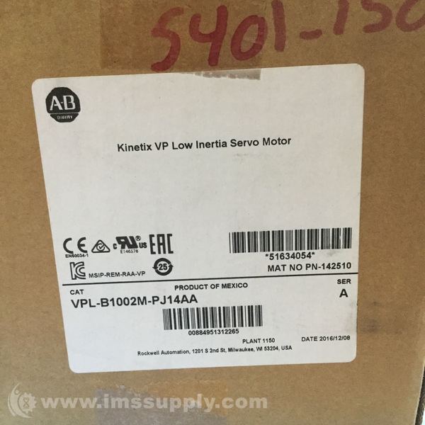 Allen Bradley VPL-B1002M-PJ14AA Series A Kinetix Servo Motor