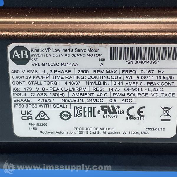 Allen Bradley VPL-B1003C-PJ14AA Series A Servo Motor