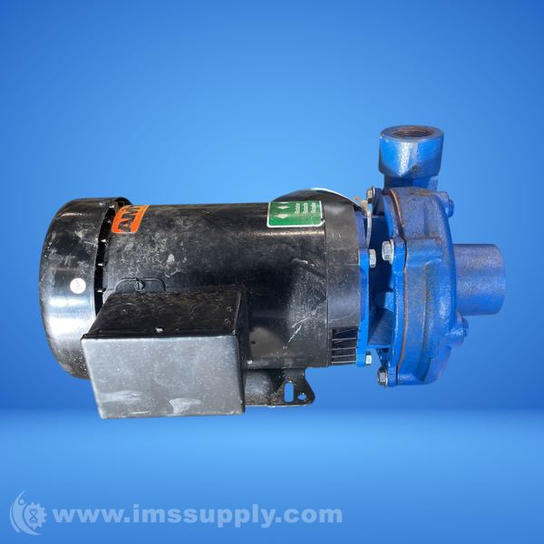 Cast iron centrifugal pump with stainless steel impeller and Buna-N seals, 2 HP TEFC 3-phase motor, 230/460V, 3450 RPM, 1.5" x 1.25" FNPT connections.