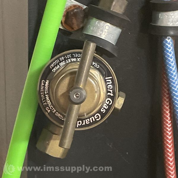Unit comes with remote control MFG: Magnetek PN: Flex 4EX2, an unknown metal beam at the base, weld gun holster, and various loose and/or severed connections.