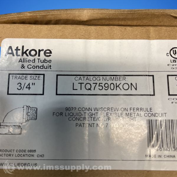 Atkore LTQ7590KON Box of 10 Liquid-Tight, 90 Degree Bend, Fittings, 3/4in