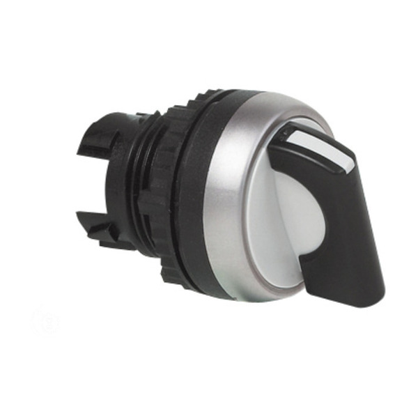 Baco Controls L21KD03-3E11 22mm Black 2 Pos Mom Sel Sw Chrome Bezel w/ 1 NO 1 NC, 3 Pos Clip
