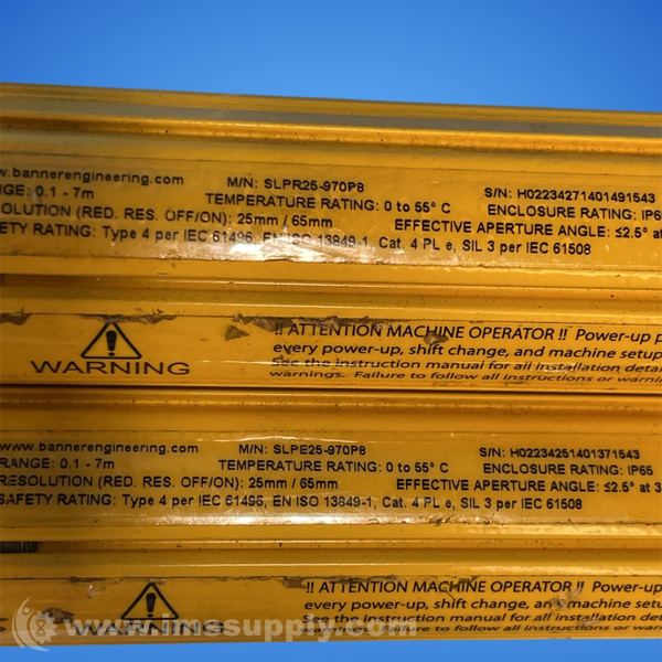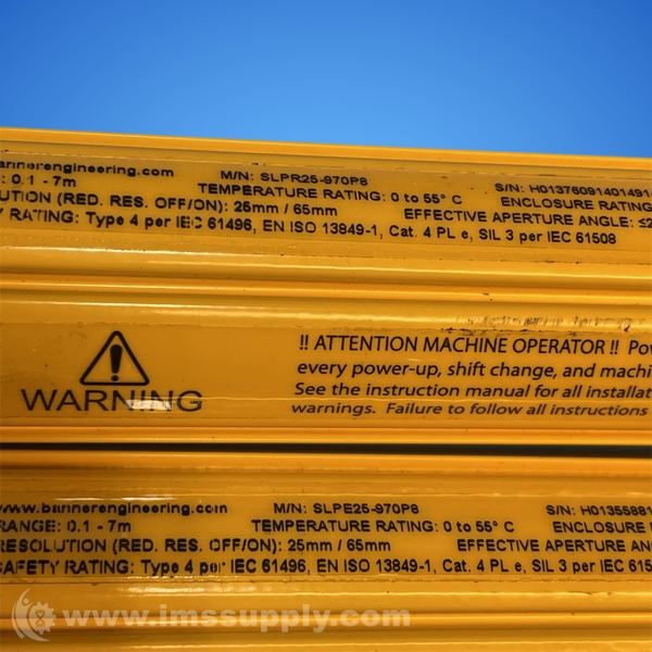 Comes with Banner SLPR25-970P8 receiver, receiver cable and emitter cable.