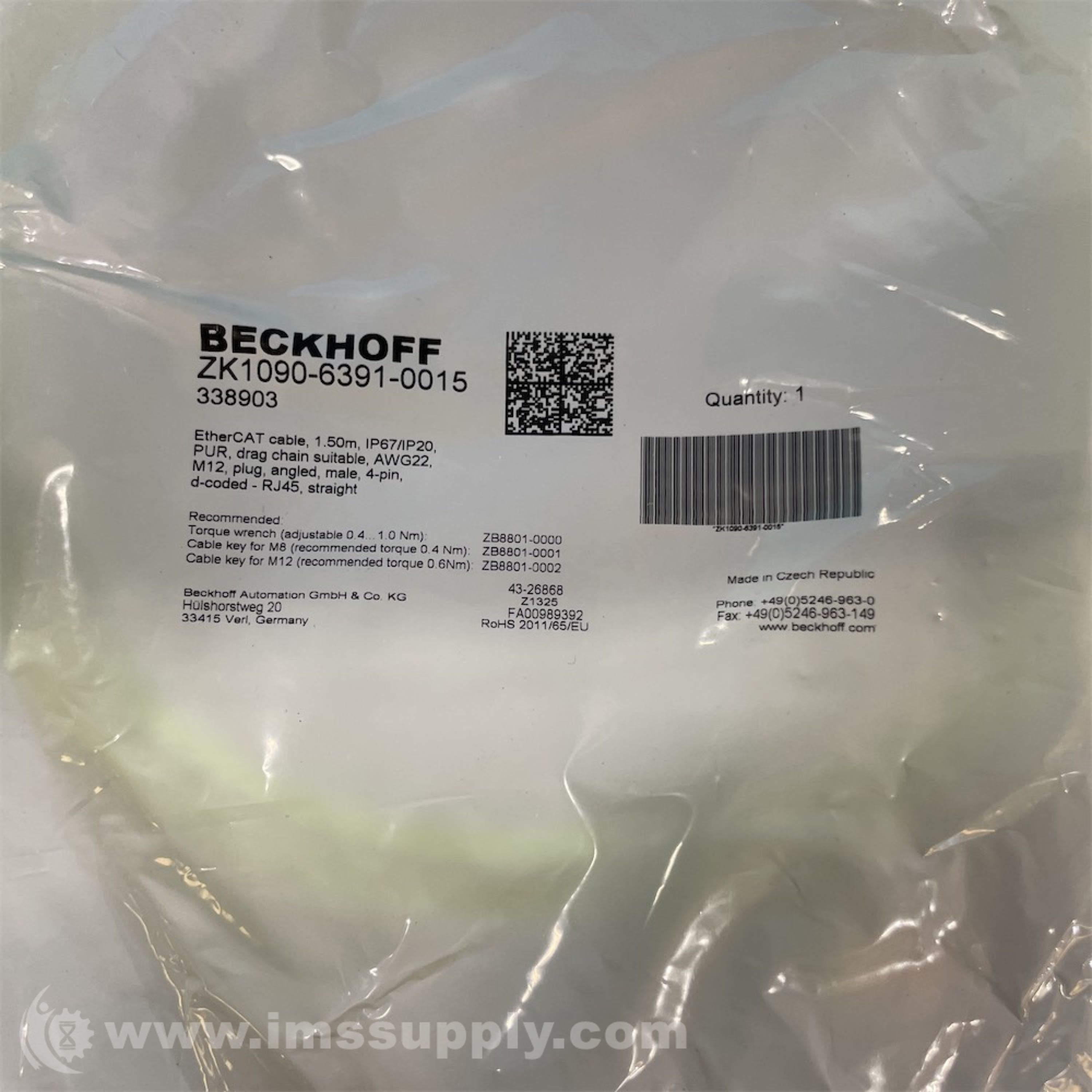 BECKHOFF ZK1090-6391-0015 ETHERCAT CABLE