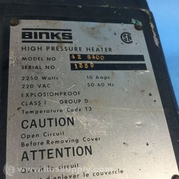 Binks 42-6400 High Pressure Heater 2250W 220VAC 10A Xproof Heater