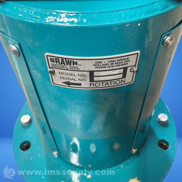 Brawn Mixer 2 BTO1-70 Industrial Mixer, .8 HP, 190/380 Volt, 3.4 / 1.7 Amp, 1425 RPM, 56C Frame, 50 Hz