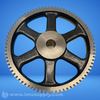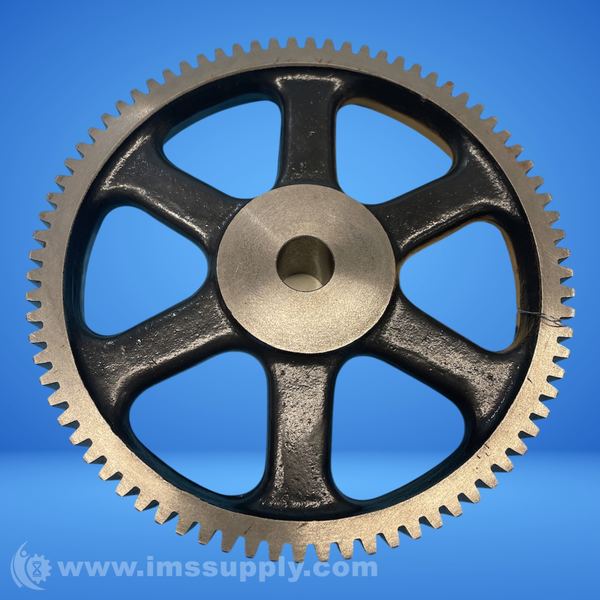 Cast iron spur gear with 10 diametral pitch, 80 teeth, 0.875 inch bore, and 1 inch face width.