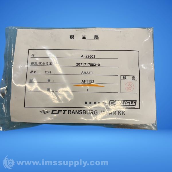 Shaft component manufactured by Carlisle Fluid Technologies, identified by part number AF1152
