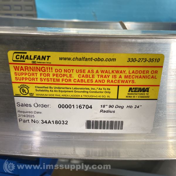Chalfant 34A18032 Cable Tray Bend
