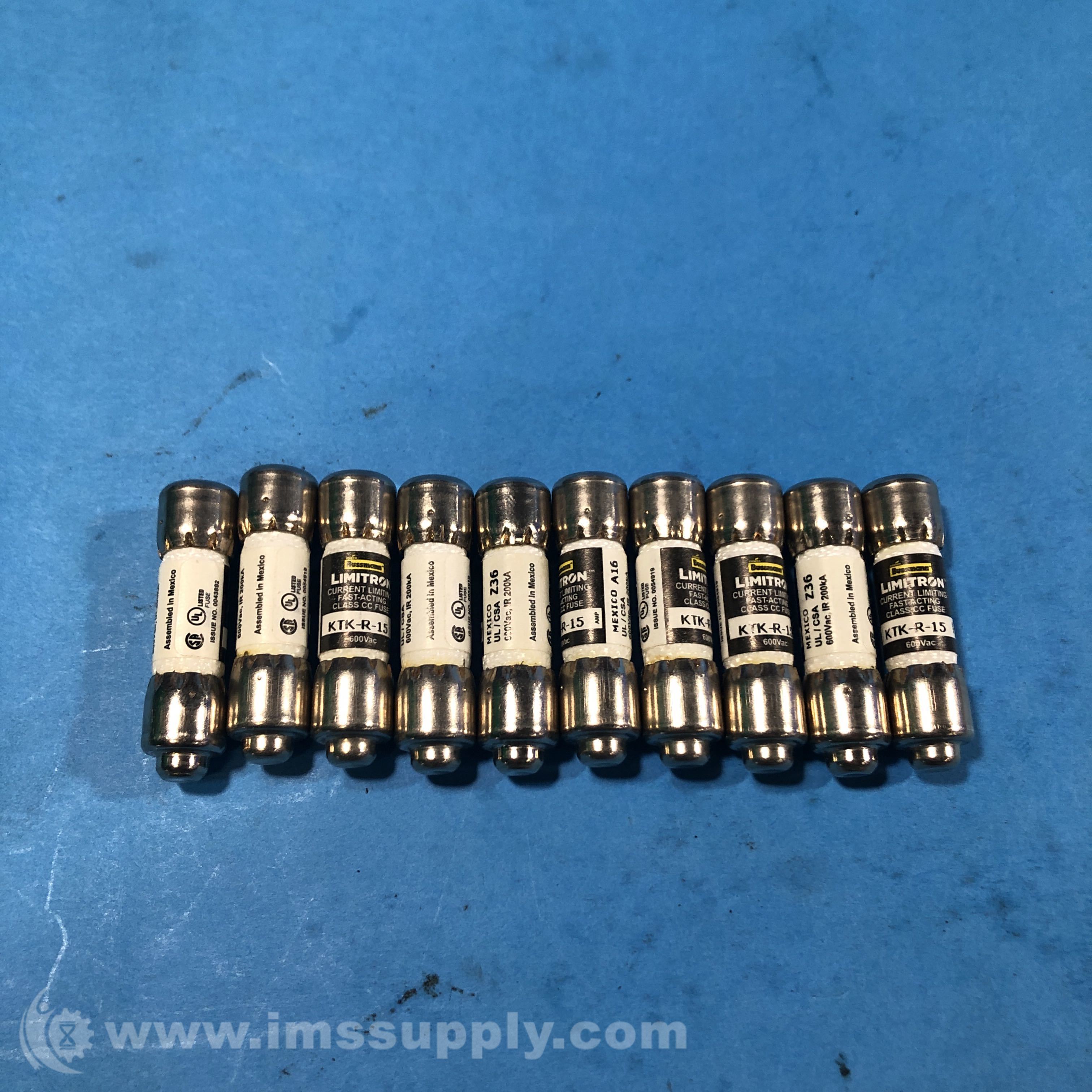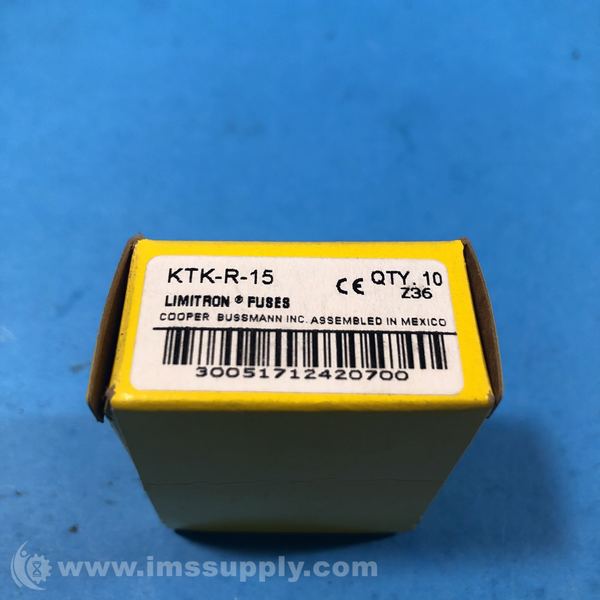 COOPER BUSSMANN KTK-R-15 BOX OF 10 LIMITRON FUSE 15A 600V
