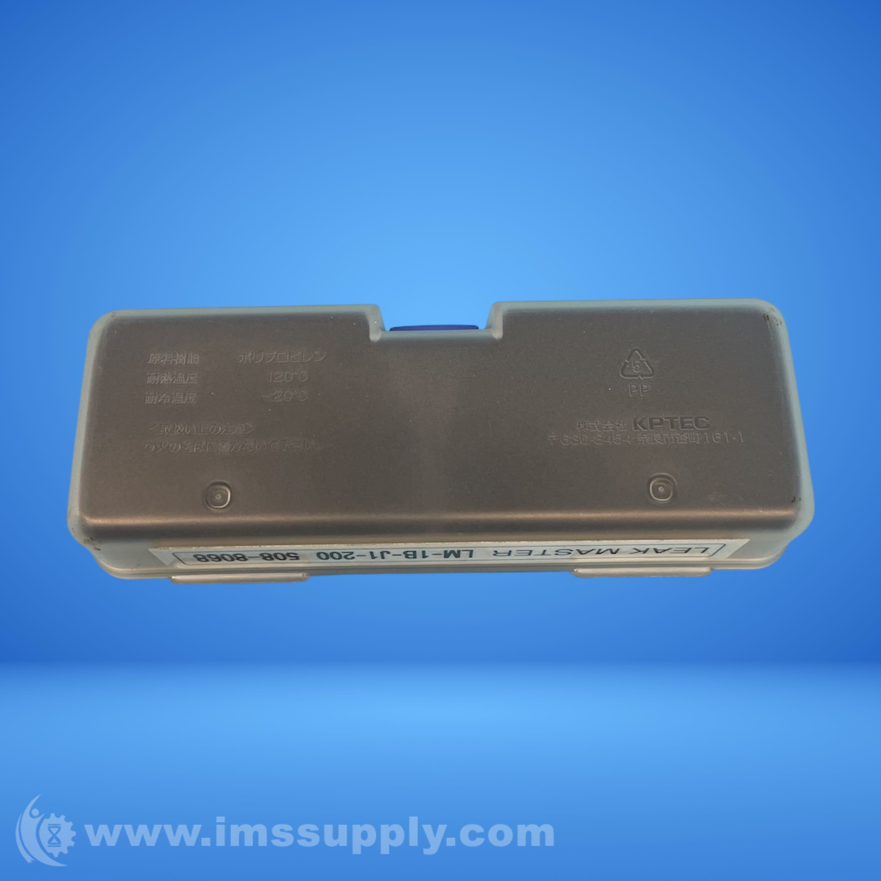 Air leak testing device made of polypropylene, resistant to 120 degrees C heat and -20 degrees C cold.