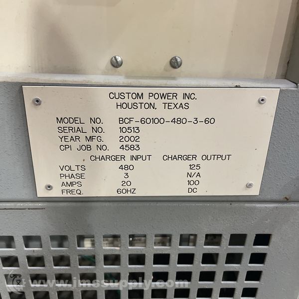 CUSTOM POWER BCF-60100-480-3-60 BATTERY CHARGER