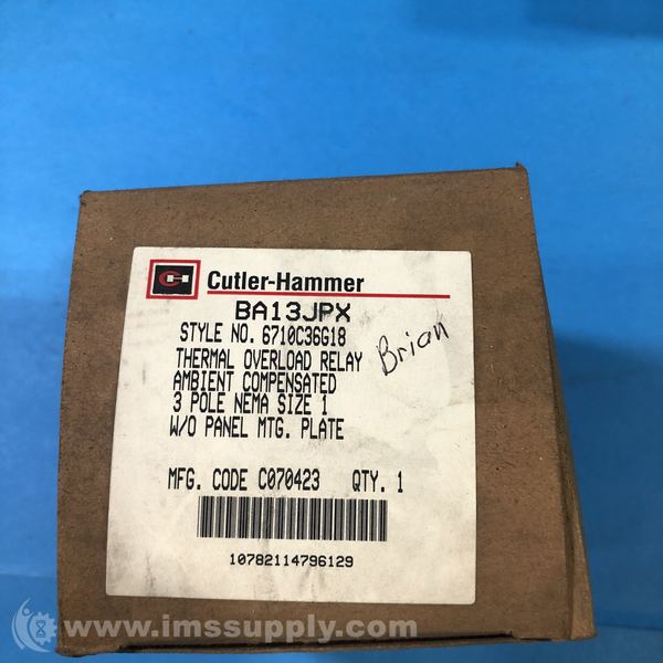 CUTLER HAMMER BA13JPX THERMAL OVERLOAD RELAYS