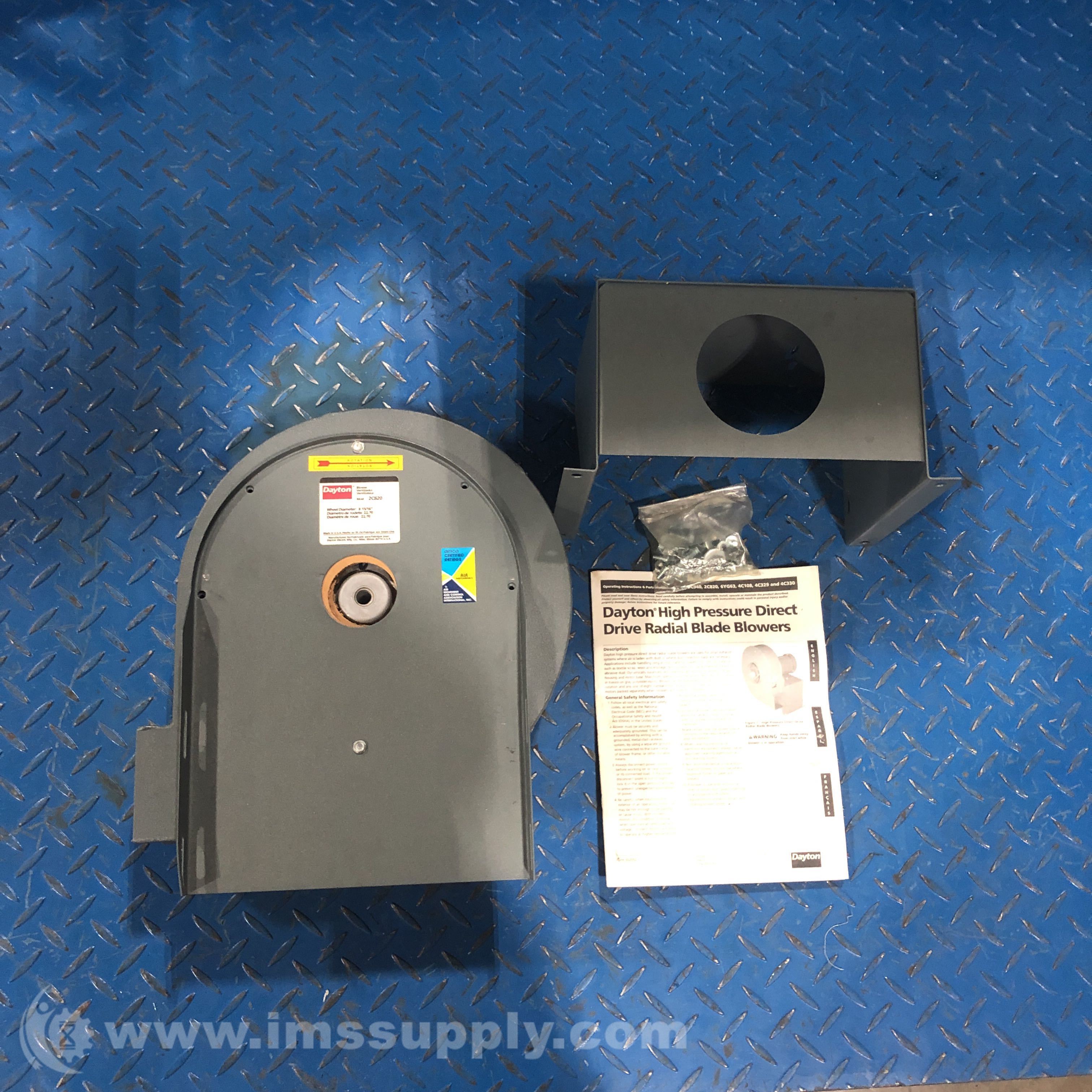 Dayton 2C820 Blower, 8 15/16 In, Less Motor Type, High Pressure, 9" Wheel Diameter