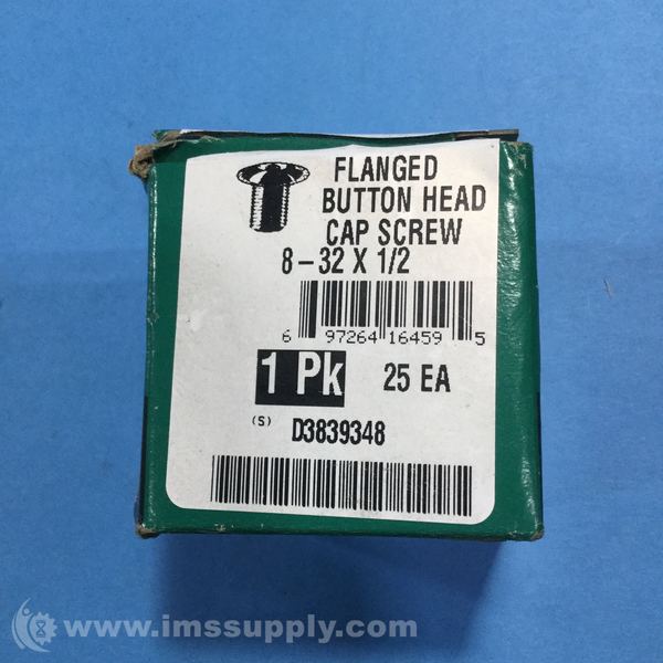 Decorah 16459 Box of 25 D3839348 Flanged Button Head Cap Screw, 8-32x1/2