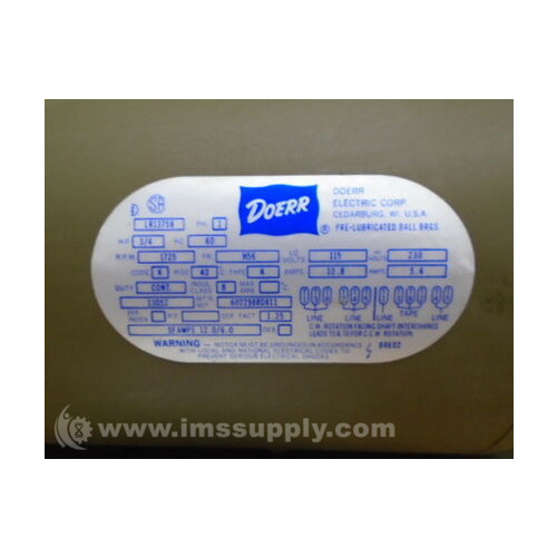 Doerr Electric Corp. LR-13758 HP3 RPM1740 FRH182TZ PH3 Motor