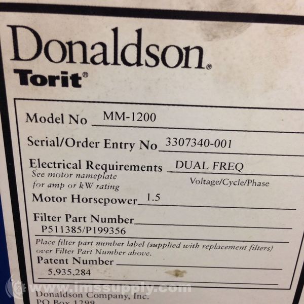 DONALDSON MM-1200 CFM MODEL MM1200 MINI-MIST COLLECTOR