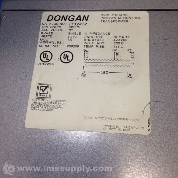 DONGAN FP12-352 INDUSTRIAL CONTROL TRANSFORMER