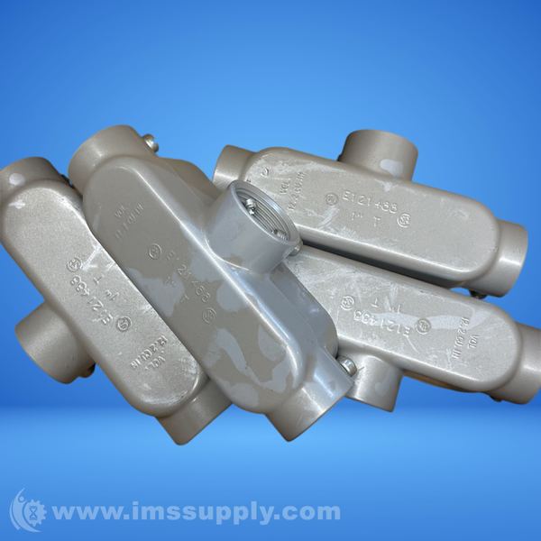 Conduit outlet body made of copper-free aluminum, T shape, 1 inch hub size, for EMT and Rigid/IMC conduit.