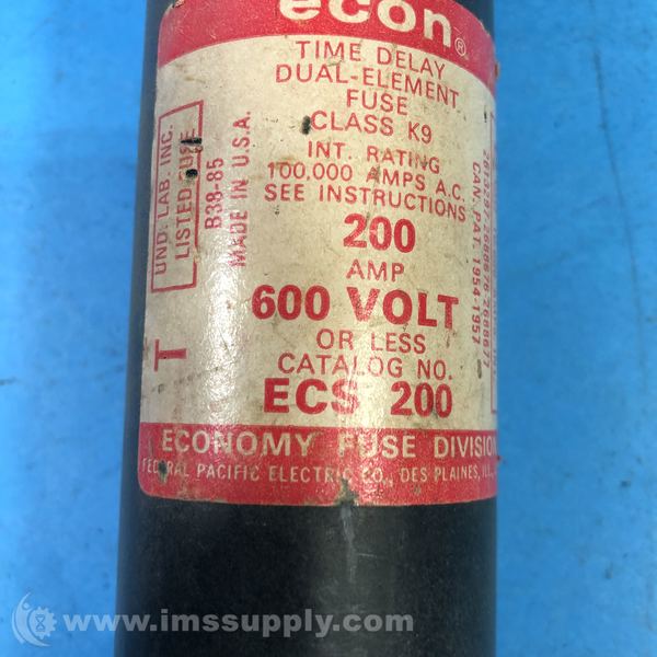 ECONOMY FUSE ECS-200 FUSE 200A 600V TIME DELAY DUAL ELEMENT