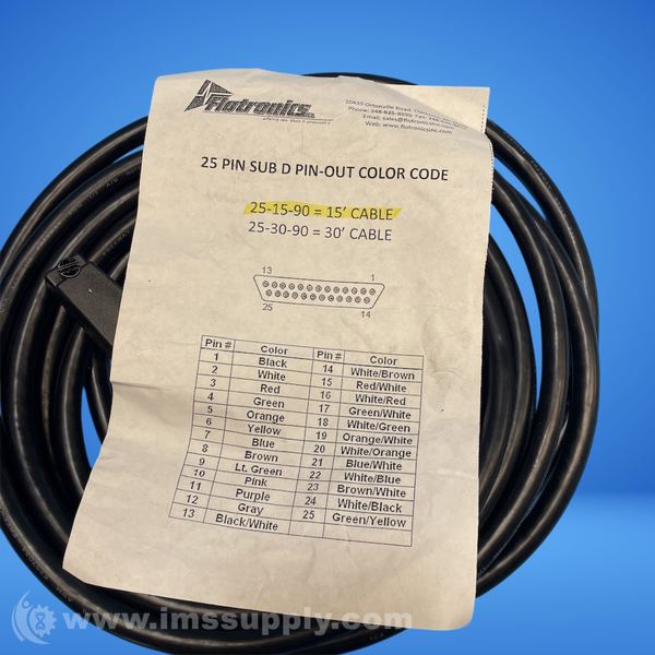 Flotronics 25-15-90 25 Pin Sub-D Female Elbow Cable