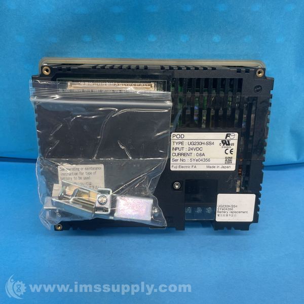 Fuji Electric UG230H-SS4 is an HMI touch screen panel designed for industrial applications. It operates at 24V DC with a current consumption of 0.6A.