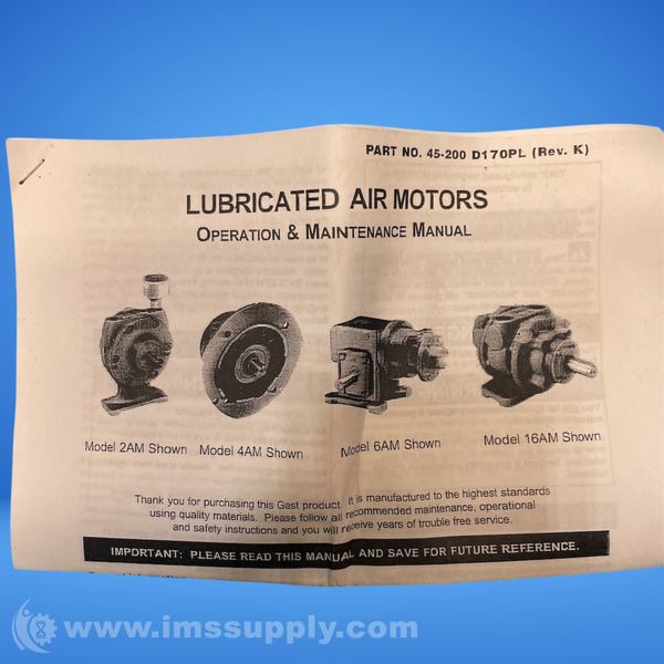 GAST 45-200 D170PL Revision K Air Motor Service Repair Kit