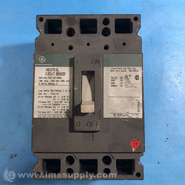 General Electric Ge TED134100WL Molded Case Circuit Breaker 3p 100a Amp 480v-ac