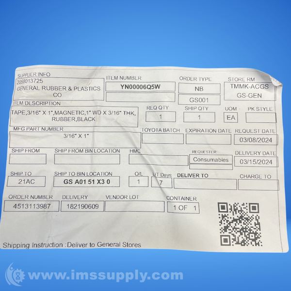 GENERAL RUBBER 3/16" X 1" MAGNETIC TAPE