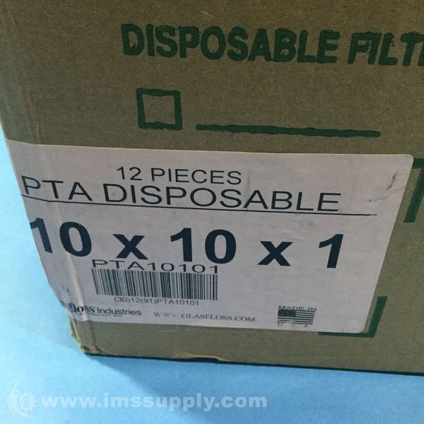 GLASFLOSS INDUSTRIES PTA10101 10X10X1 AIR FILTERS, BOX OF 12
