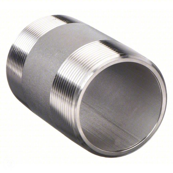 Guardian Worldwide E6BND07 Nipple: 316 Stainless Steel, 1/2 in Nominal Pipe Size, 4 in Overall Lg, Threaded on Both Ends, NPT