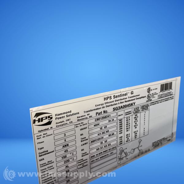 HAMMOND POWER SG3A0045KY 45KVA DISTRIBUTION TRANSFORMER