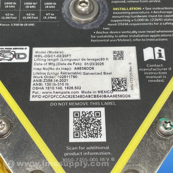 HONEYWELL MML-OGC1-02/20FT SELF-RETRACTING LIFELINE