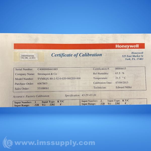 Honeywell TVMIQX-80-2-52-0-020-00-02E0-000 Recorder