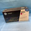 Original HP 504A magenta laser toner cartridge for HP LaserJet printers. Standard yield with approximately 7,000 pages. Compatible with HP CLJ CP3525 and CM3530 models.