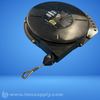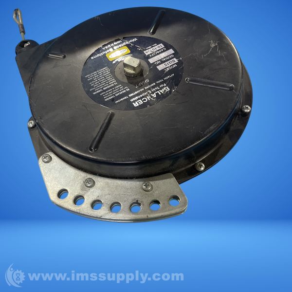 Steel tool balancer with 8 ft galvanized steel cable, 10-15 lb capacity, ratchet locking mechanism, and spring clip attachment.