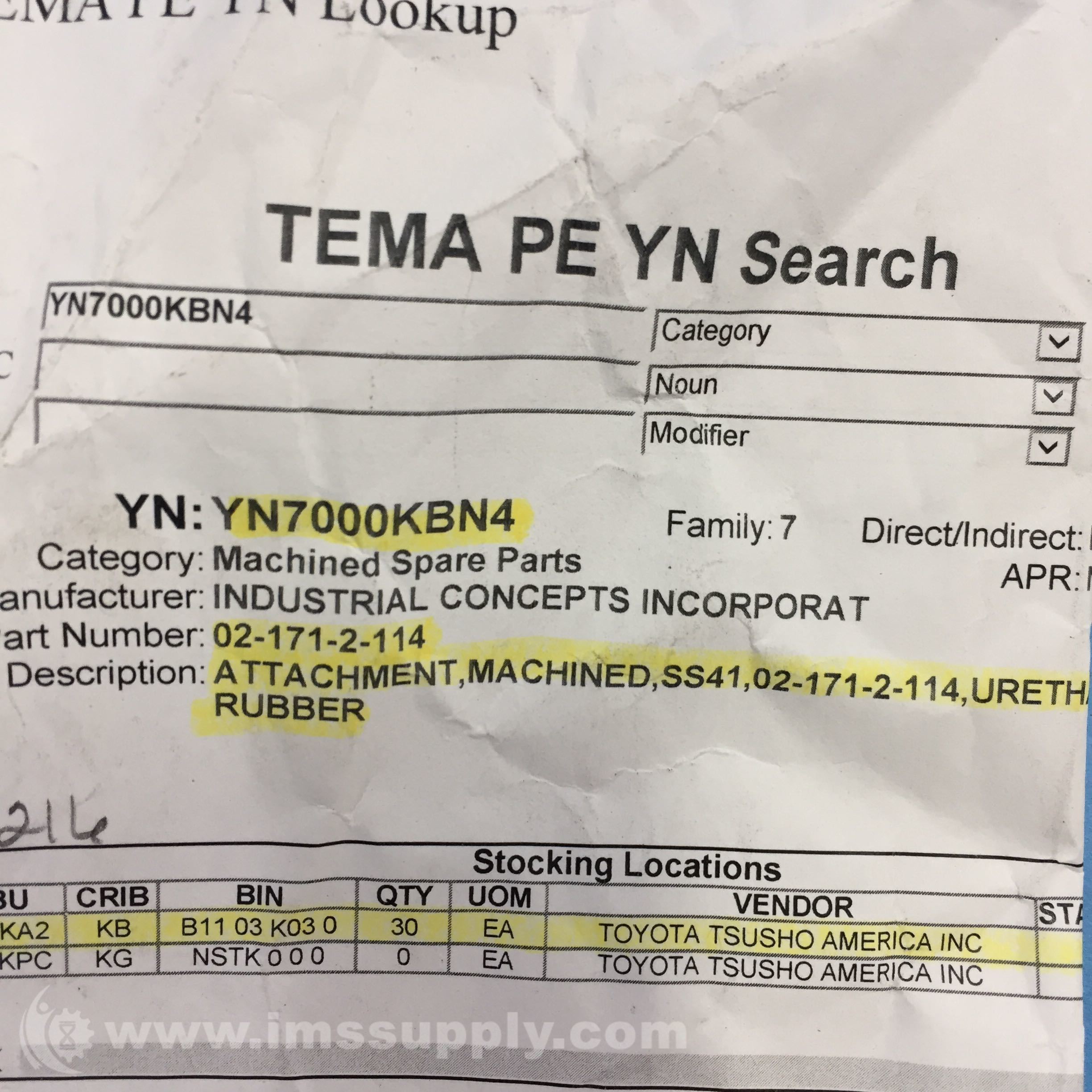 ATTACHMENT, MACHINED, SS41, URETHANE RUBBER, INDUSTRIAL CONCEPTS INCORPORAT, 02-171-2-114