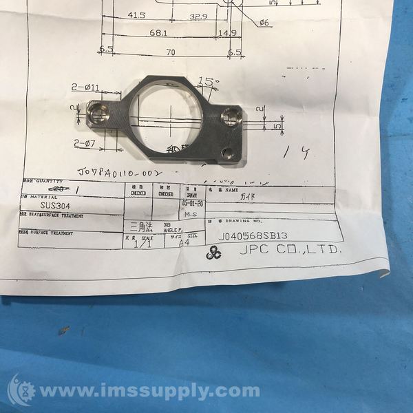 Industrial guard component made from SUS304 material, with specific surface treatment and dimensions as per the provided drawing.