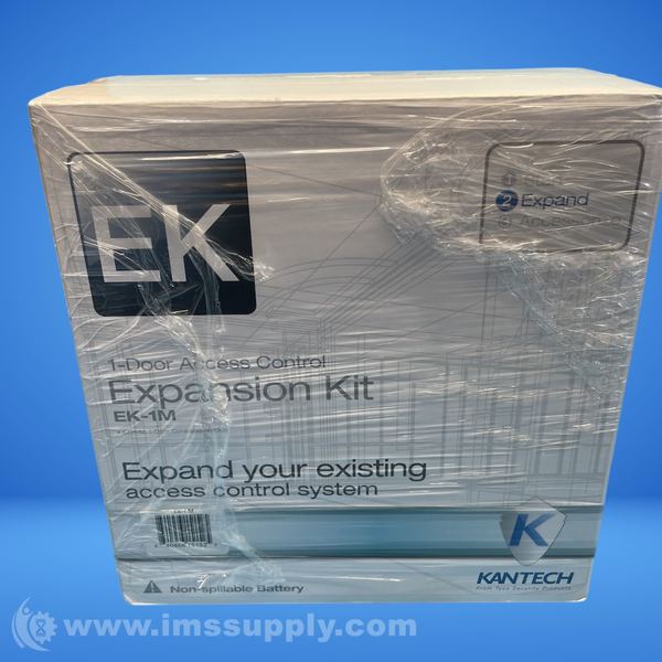 The Kantech EK-1-M is an access control expansion kit designed to expand existing access control systems. It includes components such as a 1-door controller, transformer, power supply, and battery.