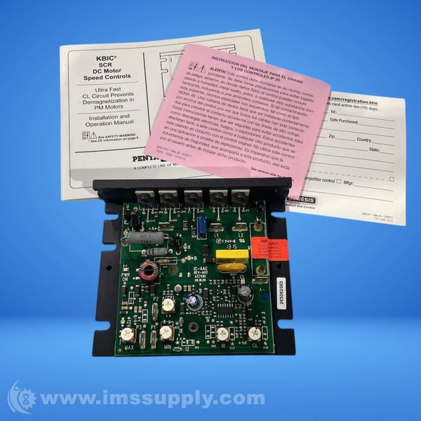 Chassis mount DC motor speed controller, 230VAC input, 0-180VDC output, 1/50-1HP rated load.