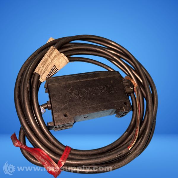 Keyence fiber optic amplifier unit with attached cable and fiber optic sensor head
